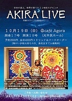 AKIRA LIVE日時:10月19日(日)開場17時 開演18時場所:Café;;;;;; Agora 山口県光市島田4-13-15(光市民ホール内) 料金:予約3500円 当日4000円+...