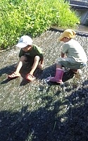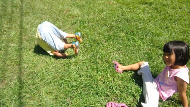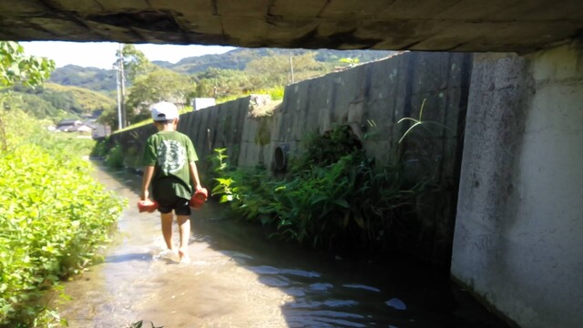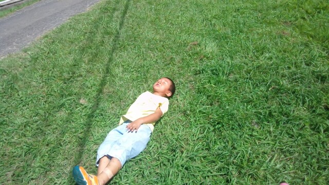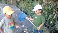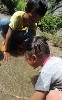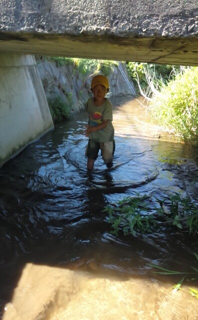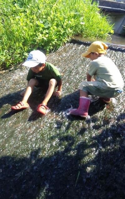 そろそろマラソンとかが気持ちよくなる季節だな。 そんなことを思ったから、「今度、マラソンしようか」と誘ってみた。 そしたら、思いがけず「やりたい!」と返ってきた。 おうちえんのマラソンコースは、1キロメートル強。最初が急坂のなかなかの道のりだ。 うれしいねえ。元気なんだね〜。 いちかが、やりたい!と言ったのビックリだった。 いちかにとっては、はじめてのチャレンジとなる。 それが、今日なら、行けそう。(スタッフの配置的に) マラソンしたいと思うけど、やりたい子いるかな?と聞いたら、びっくり10人も! うん、やっぱり、元気なんだなあ。その軽やかさが今のみんなの感じを物語ってるな。 久しぶりのマラソンコースは、私にとってもリフレッシュの時間だった。 一緒に走ってたきよひと、かほ、いちか、なおとが、なんだか一段とたくましくなったなあ。。。と実感してた。 最終ランナーのまひろとよしみさんが無事ゴールした。 さあ、みんな、自分のプランにわかれよう〜! 今日は、きよひとが、「クワガタのところにバナナトラップをかける」というプランを出した。 クワガタの木に、スズメバチがいるから、それをトラップにかけて、クワガタを取れるようにしたいのだ。 きよひとが、せっかく自分でやりたいことを考えてきたから、なんとかしたい。 う〜ん、でも、バナナは、むずかしい。 いちじくは?と、ももちゃん。ナイス!!!いちじくだったら、今なってるし、食べそこねた開きいってるやつとか使えばいいんじゃない! そこで、いちじくトラップに変更。 あつおさんに作り方を聞いて、ももちゃん、きよひと、けいごで作ってた。 そして、できたら、きよひと、けいご、りっか、ゆずき、ももちゃんでクワガタの木の近くにかけに行った。 わたしは、午前中は、紙飛行機を作って、みなと、きょう、あみと下に飛ばしに行った。 上の段から下の段に向けて、や、電線に届かすように上に向けて飛ばしたりとかして遊んだ。 わたしの飛行機が川に向けてないのに、何回も川に向かって飛んで、濡れずに木や砂の上に着地して面白かった。 紙飛行機飛ばす合間に、きょう、あみが、草の上でゴロンゴロン始めた。 寝転がってたり。 みなと、わたしも。 気持ちいいね〜。 また、紙飛行機とばすわたし。ついに水の中に着水。あ〜、濡れちゃったわ〜。 そして、川に降りたら、水が気持ちいい。 3人も降りてきた。 みなとが、顔をつけてる。 きょうもやる。 なんていいお顔〜♡ お昼からは、わたしは、きょう、ゆずきとモクズガニ探しに。 この前、見かけたところに。 川を覗いたりしながら歩く。川の中になんか見えた!濁った! これは、なにかいたんだろう。 急いで川に降りたけど、なんにもいなかった。 ゆずきが、苔を丸めて川に転がす。 これが面白くてしばらく転がして遊ぶ。 川の中を走ったり、歩いたりして、さあ、帰ろうか。 今日は、きょうとじっくり過ごせた。 きょうと過ごす時間持ちたいなと思ってたら、ちょうどそうなった。 by よっこ |