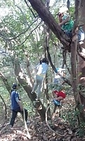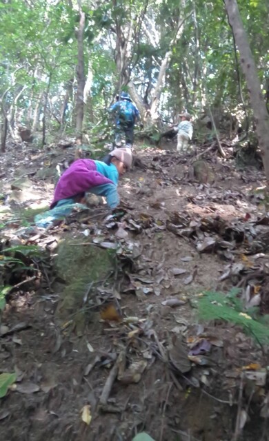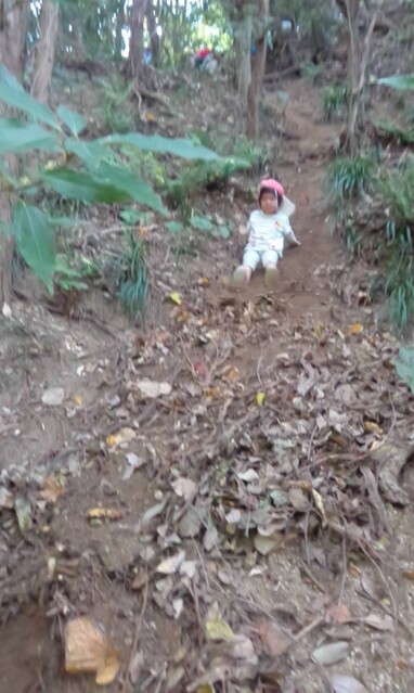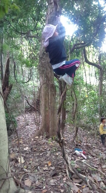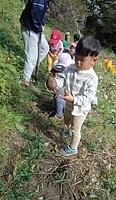 山に入る前は、むかご取りをしてから。 ガードレールの外側にもぐって取ってる(^^) 大王様の木までの道。 きよひとが自由。自分で行きたい道を進む。 道を外れて行くのが楽しいのだ。 きよひと、きょう、けいご、ゆずき、あみで、忍者修行をしながら道のないところを進む。 まひろも少しついてきた。途中からは難しくなって正規のルートに。 だけど、難しい道にまひろやあみが混じってるのも嬉しい変化だ。 けいごときよひとが対等な感じもうれしい。 むべを見つける。無傷のきれいなやつ。みんなにシェアしてた。 大王様の木についたら、けいごは、一本橋を渡って→つるにぶら下がる→別のつるに移動のアスレチックみたいなコースを見つけてそれを楽しんだ。 りっか、ちほ、さゆき、きょう、きよひともやってた。 りっかは、もくもくと真剣に一本橋を渡ってる。 大王様の木にみつきが上手に上り下りする。 ゆずき、みなと、みお、いちか、かほ、さゆき、あみ、ちほも登る。 みおが「上は、こわかった。。。」と言ってた。ドキドキだったね。 斜面の滑り台も何人も滑り降りてあそんでた。 帰り道は、別の道から。 歩いてたら、かほが、服が落ちてるのを見つけた。 「あ!みつきのだ!」 先週、大王様の木に来てたから、そのときに落としちゃってたんだね。 よかったねー、今日通って! 山から道路に出るとこは、急斜面。これを滑り降りていく。 はい、到着〜♪靴の中は、土だらけ。 きよひととけいごが来ない。。。と思ってたら、2人は忍者になり、気づかれないように後ろからついてきてるのだ。 そっと、しとこう。。。どこかで、出てくるのか!? お部屋に戻ってきたときに「わあ!」って帰ってきた。 午後は、さつまいもほり。 今年は、どうかなってますように!!掘ってみる。 あー、思ったより、ついてた。よかった〜。 丸っこいのが多いな。 宝探しのように掘った。 かほが、めちゃ深く手で穴をほってる。どこまで掘るの〜〜 さゆきが、最後まで芋掘りを楽しんでた。 最近のさゆきは、いつも農作業を最後まで楽しむ人になってる。 最後の10分で、けいどろ! けいどろをやらないメンバーでおいもはこび。 おつかれさま! あるお母さんが「あつおさんやよっこの目が、きらきらしてるのを見て入園を決めた」っていうことを話してくれた。 そして、「今、自分の子の目がきらきらしてるのをかんじる。いきいきしてる。」って。 とてもうれしかった。 by よっこ |