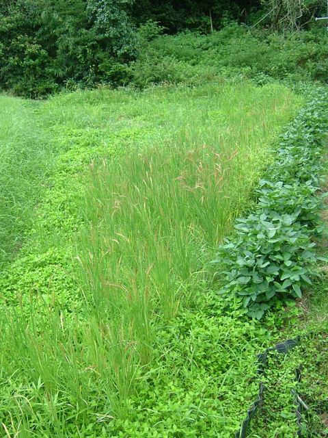 数年前では、そう思っていた。 実際それまでの中山間地での自然農では、みなうまくいっていた。 今の家のまわりでお米を作り始める前までは・・・。 この山の中での田んぼを始めてからは、場所によっては耕さざるを得ないことを痛感する。 ここ、平生町長谷という部落は、水がこんこんとわき出て、水のおいしいところ。 うちの家も2本の沢にはさまれて、水にはまったく苦労しない。 だが、地面の下を無数の水の道があるのだろう。 そこかしこに大きな穴があいている。 田んぼの下にも、床土の下に大きな穴がいくつもあるのだろう。 田植えをして水をためたとたん、毎年のように大穴があく。 大きい時は僕の背よりも深く、中に入って踊れるくらいの大穴。 おまけに砂の多い砂質土なので、不耕起の場合、水を入れても入れても全く水のたまらないところも多い。 いわゆる「ざる田」、それも超がつく。 2,3年自然農で作ってみたが、水をごうごうと入れっぱなしにしてやっと端まで水がいく。だけどその下の段には、水は届かない。 そして超冷たい山の水。 おまけに日照時間も短く、稲の分けつが、里の半分以下だった。 それに必ずどこかに大穴があいてはその補修にすごい労力を使うという始末。 里での米作りにくらべて、手間も労力も神経も、3倍以上かかった。 しかも収穫は半分以下。 というわけで、一昨年から耕すことにした。 耕すと何とか水はたまり、次の田にも水が落ちるようになり、水持ちがいいから、水をじゃんじゃん流し込まないですむ。 そうすると、水温も上がり、稲の成長はすすむ。 さて、そうして耕しはじめた僕だが、やっぱり自然農にもっていきたい。 一度耕せば穴もふさがり、不耕起でいけるんじゃないかと一枚の田をまた自然農にした。 去年、不耕起1年目。 稲刈り前に一部に大穴があいたが、なんとかお米にはなった。 そして今年2年目。 現状は写真の通りだ。 2年で元のざる田に戻ってしまった。 田植え後、中の方まで全く水が届いてなかったのだ。 畦には水がたまっていたから、水は入ってるもんだと僕もすっかり安心していたのがいけなかった。 しかも今年の6月はほとんど雨も降らなかった。 で、中の方に植えた苗は、気づいたときにはみな消えていた。 ここはうちに自然農を習いにきたみんなが植えた田だっただけに、申し訳なかった。 いつもなら7月の頭には、稲の姿がくっきり見え始めるのに、どうもおかしいなと思って気がついたのが、7月半ば。 すでに取り返しがつかない時期でした。 来年はここもやっぱり耕します。 一生懸命植えられた方、ごめんなさいです。 それでも、一部、水があった所の稲は、すくすくと成長してくれています。 今ちょうど赤米の穂が出穂したところ。 というわけで、今現在の僕の考えとしては、耕さずにすむところは、耕さずにやるのが一番いいけど、耕した方がいいところもあるんだなというのが正直なところ。 田んぼは耕すものと思い込んでることも愚なら、耕すを悪として耕さずを善とするのも愚ってことかな。 要はとらわれず、その場その時に応じて、施せる、それが大事なことのようです。 |