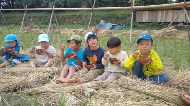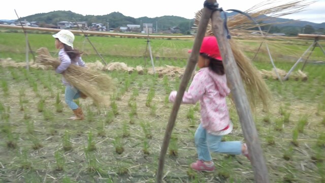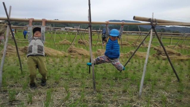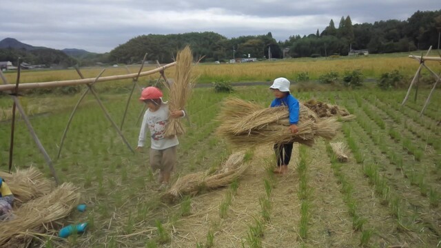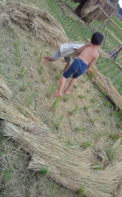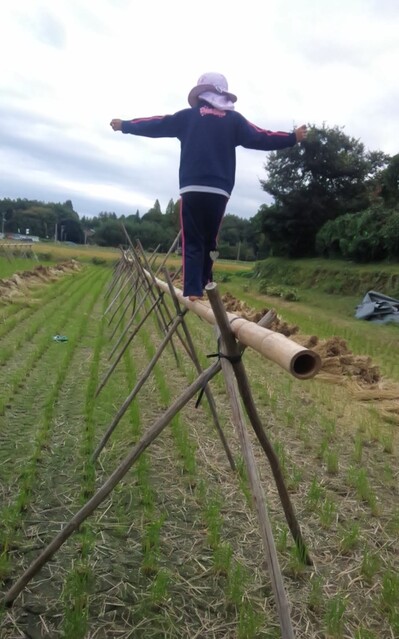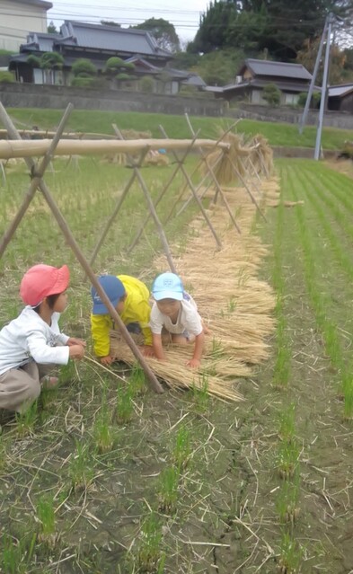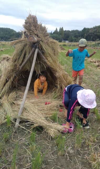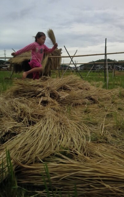 田布施の田んぼの稲こぎが終わったので、子どもたちとわら遊びに出かけた。