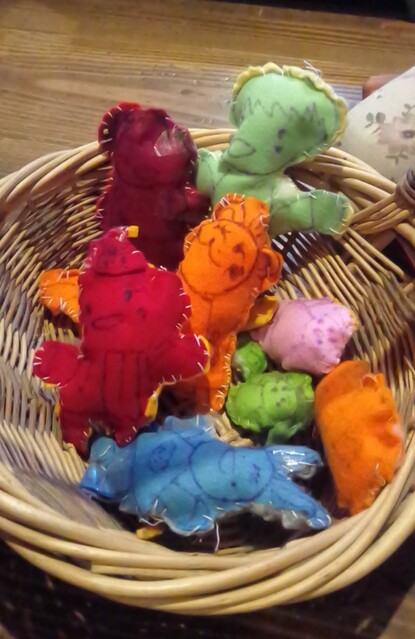 昨日、ついにちほが一ヶ月かかってフェルトのお人形を10体完成させた。