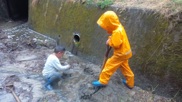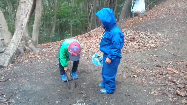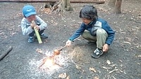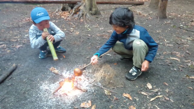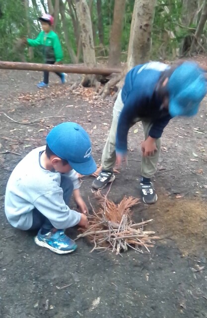 やきみかんしたいから、みかんも持っていきたい。って(^^) そうかー。山の広場で焚き火は、久しぶりだね〜。 行きたいのは、他には、きよひと、みつき、りっか、みなと、なおと、あみ。 もうすぐ、雨が降りそう!急げ〜!! あみ、けいごは、箱を持って歩く。 薪を拾いながら箱に入れていくけいご。 あみは、箱を持っているんだけど、なぜかめちゃくちゃ入れる枝を選んでるから、ほんの少ししか入ってない(^_^;)。。。何で? 途中からは、杉っぱをたくさん入れていた。 着いたら、けいご、なおとがいっしょに焚き火の準備。 上手にきれいに木を組んで、着火もすぐ成功。さすが。 みつきも自分で穴をほって自分の焚き火をしようとしてる。 みなとが手伝う。 となりで、でっかい火が燃えている。 みつき、みなとは、なかなか杉っぱとか細い枝を集められない。 そのうち、雨が降ってくる。 ぬれて、いよいよ火がつかないのだった。。。今日は、わたしが、点火。 しても、火を保つのもなかなか難しかった。 わたしも、薪集めに動いた。 そして、焼きみかん。みかんが大きかったから、2人で一個を分けて食べる。 焼くのを楽しんでた。 焼きみかんも久しぶりだ。おいしいね〜。 そのあとは、煙がすごくて、煙の中に入って遊ぶ。 忍者のドロンみたい(^o^) けむけむー。 おもしろっ。すごくいい時間だった。 午前中、みなぎ、ゆずき、みお、らくは、日向平へおさんぽ。 よしみさん、いちか、まひろ、きょう、かほ、さゆき、ちほは、般若寺へおさんぽ。 午後、みなと、ゆずきは、川で遊ぶ。 2人でプールみたいなのを作って遊んでた。 みなとが、ゆずきとあそぶのがうれしくてたまらない感じが印象的だったな。 by よっこ |